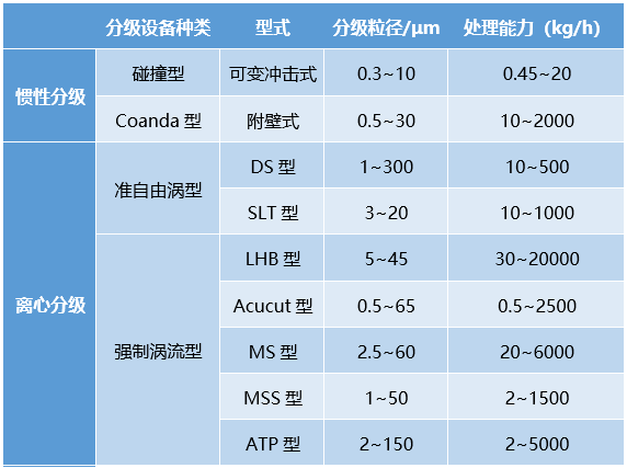 干式超細(xì)分級(jí)設(shè)備的種類及主要性能
