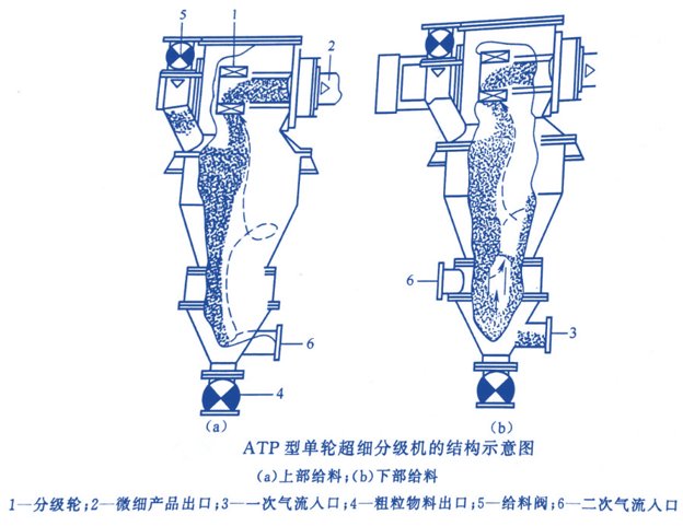 ATP型超微細(xì)分級(jí)機(jī)常用于與流態(tài)化床對(duì)噴式氣流粉碎機(jī)、高速機(jī)械沖擊式磨機(jī)、球磨機(jī)等配套使用或與流態(tài)化床對(duì)噴式氣流粉碎機(jī)及高速機(jī)械沖擊式磨機(jī)做成一體,構(gòu)成內(nèi)閉路超細(xì)粉碎作業(yè),以提高粉碎效率、控制產(chǎn)品細(xì)度和粒度分布。