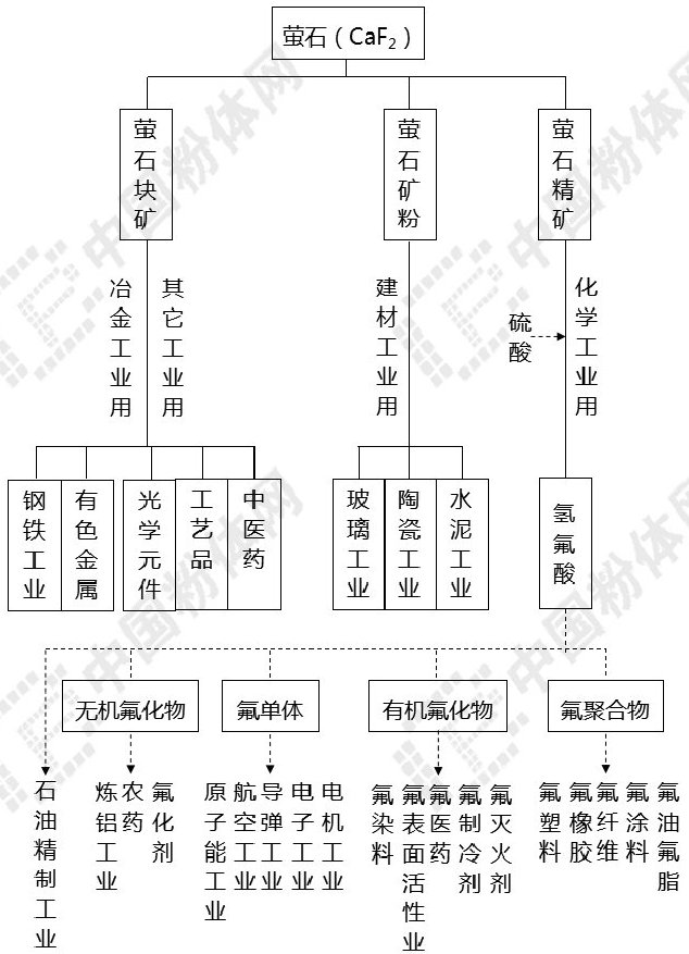 中國粉體網(wǎng)訊 螢石又稱氟石,是化學(xué)氟元素的主要來源,工業(yè)上常用濃硫酸與酸級螢石精粉來提取氟元素。其廣泛應(yīng)用于關(guān)乎國計民生的諸多重要行業(yè),既有新能源、新材料等新興行業(yè),也有制冷、建材、冶煉、光學(xué)、陶瓷、玻璃等傳統(tǒng)行業(yè),同時還有國防、電子、軍工等具有重大戰(zhàn)略意義的領(lǐng)域。因此,我國將螢石列為24種戰(zhàn)略礦產(chǎn)資源之一,定位是“可用盡且不可再生的寶貴資源”。