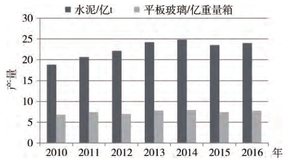 2010~2016年水泥、平板玻璃產(chǎn)量變化圖
