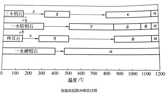 氫氧化鋁在脫水過程中伴隨著晶型轉變,一般到1200℃全部轉變成α—Al2O3。