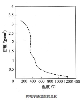 在煅燒過程中,密度隨溫度的變化如圖,隨著溫度的升到1250℃,密度逐漸上漲,從2.5g/cm3升到4 g/cm3左右。同樣是由于脫水的過程的結束,γ—Al2O3變得致密,比表面積下降,導致密度上升。