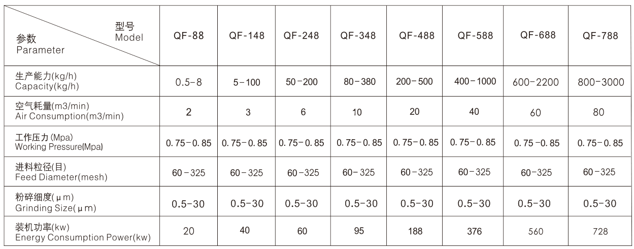 能耗低,與其它類型氣流粉碎機相比節能30%〜40%。