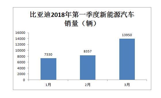 中國粉體網訊 近日比亞迪發布了2018年3月銷量快報。今年1月,比亞迪新能源車同比增長超10倍。2月,得益于秦、宋DM等插電式混合動力車型的熱銷,新能源車同比大幅增長超300%,其中插電式混合動力車型銷量更是同比猛增539%。3月繼續保持強勁熱銷勢頭。