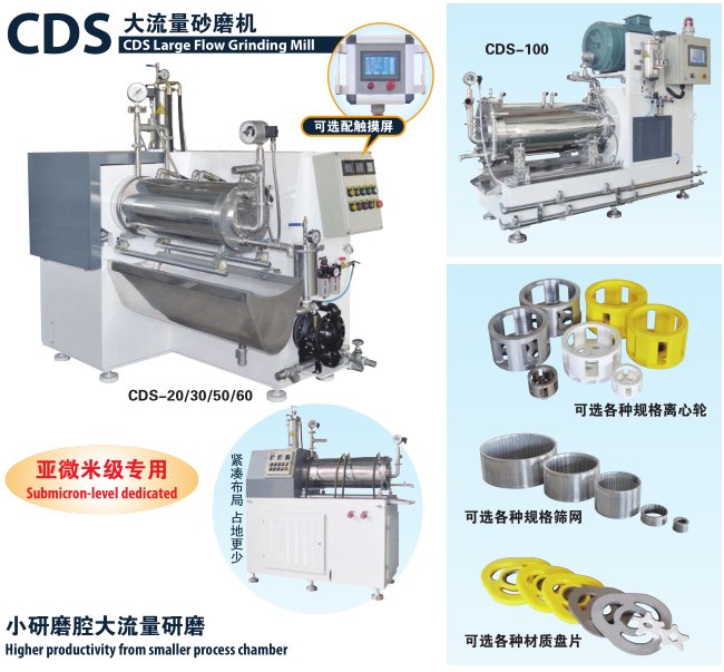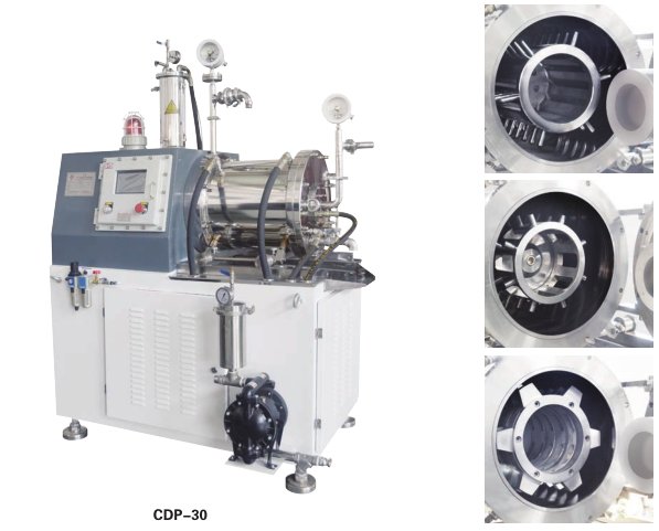 CDP系列納米砂磨機廣泛應用在陶瓷、墨水、噴墨、色彩過濾器的分離劑、功能性陶瓷、鋰電池材料、熱敏紙、電子拋光液、納米色漿、農藥等納米研磨領域。