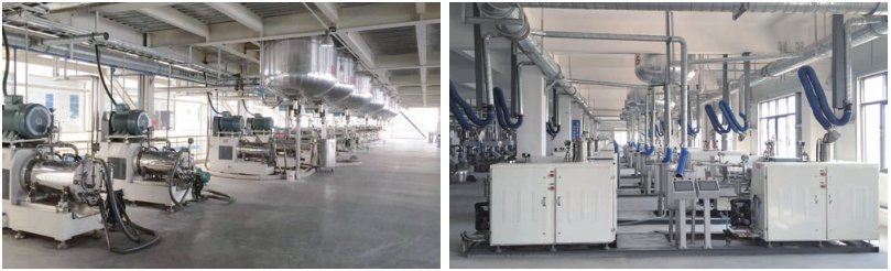 采用循環研磨工藝,環保節能、勞動強度小。配制好的原始漿料,經過第一遍粗略研磨后,泵入循環攪拌罐,經底部泵輸送進入納米研磨機;一邊經過研磨后送入循環罐,與未曾研磨過的物料通過攪拌機快速混亂,一邊又通過底部泵入砂磨機,周而復始直到達成研磨要求。一般而言,罐的容積是砂磨機流量的1/4。