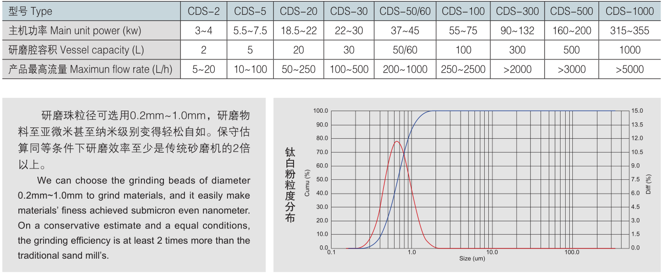 CDP系列納米砂磨機采納歐洲先進設計標準,流量大,控溫能力好,能量轉化率高,達成納米級研磨時粒度分布范圍窄。