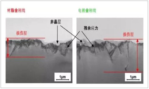 樹脂線切割的硅片的破損層要比電鍍線加工的硅片薄,特別是裂痕距減小。