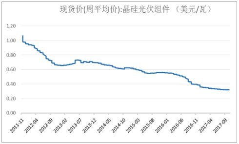 近年來晶硅光伏組件價(jià)格走勢(shì)圖