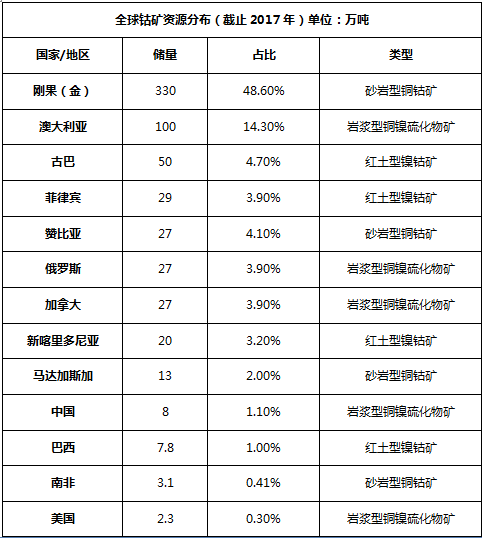 中國粉體網(wǎng)訊 鈷是一種重要的金屬,外觀呈銀白色,比較硬而脆,有鐵磁性,作為戰(zhàn)略資源,擁有良好的物理、化學(xué)以及機(jī)械性能,是制造高溫合金、硬質(zhì)合金、金剛石工具、電池材料、防腐材料、磁性材料等重要原料。廣泛應(yīng)用于航空航天、電子電器、機(jī)械制造、汽車、化工農(nóng)業(yè)、陶瓷領(lǐng)域。眾所周知,鈷在地球上分布相對集中,分布以剛果(金)為主,澳大利亞和古巴次之。
