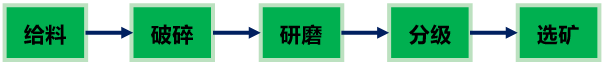 原礦石、廠家生產(chǎn)工藝的差別導(dǎo)致具體的生產(chǎn)步驟存在一些差異,我們綜合了一些選礦生產(chǎn)流程,大致分了以下幾個(gè)步驟: