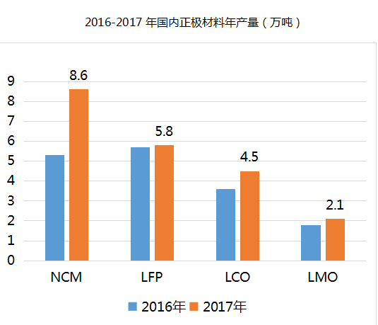 但是近期據起點研究(SPIR)統(tǒng)計,2017年全國正極材料產量為21萬噸,相比2016年的16萬噸同比增長 31.25%。其中三元材料成為2017年增長最快的正極材料。