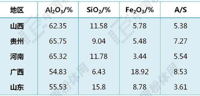 不同地區(qū)鋁土礦中含有的雜質(zhì)
