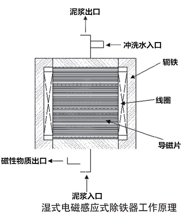 目前陶瓷行業所用到的磁選除鐵設備有很多種類型,根據分選介質有干式除鐵器和濕式除鐵器,根據磁源的不同又分為永磁除鐵器和電磁除鐵器等。