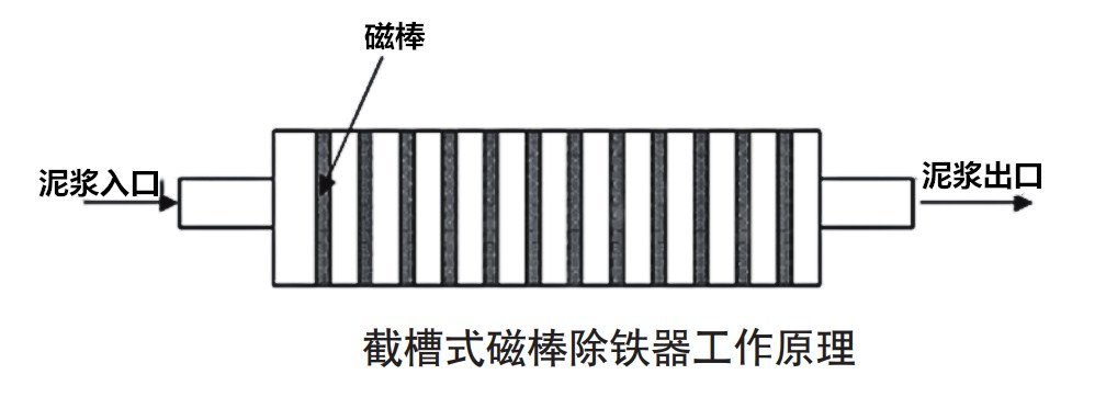 除了上面寫的兩種除鐵器,還有一種磁棒除鐵,磁棒除鐵是磁棒直接和漿料接觸從而達到除鐵效果的一種最簡單的方法。磁棒一般采用優質不銹鋼管和有“磁王”之稱的稀土永磁材料NdFeB,并采用特殊的制作方法制作而成,表面磁場強度可達10000Gs左右。