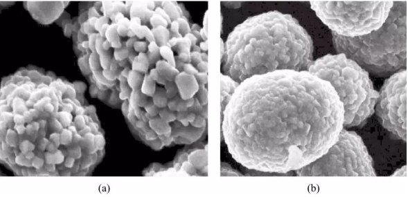 不同形貌的三元材料倍率性能不同,疏松多孔的形貌有利于電解液的浸潤,縮短鋰離子的擴散路徑,所以倍率性能好于密實的形貌。疏松多孔的三元材料SEM如圖(a)所示。密實的三元材料SEM如圖(b)所示。