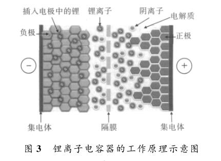 富士重工的Hiromoto T等提出了鋰離子電容器的工作原理,如圖3所示。