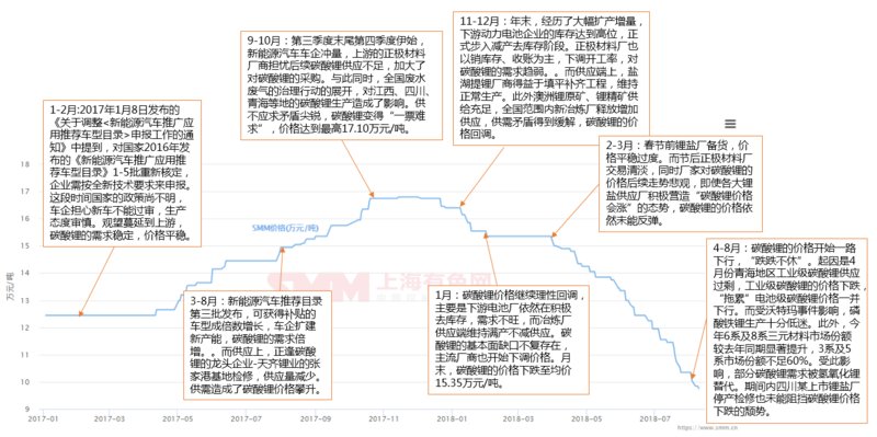 為了更好地理解碳酸鋰的發(fā)跡史與落日史,SMM整理了近兩年的碳酸鋰走勢(shì)并給出了原因詳解。