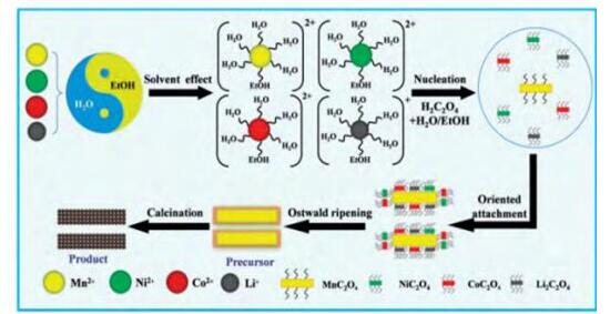 一步法制備一維棒狀三元正極材料NCM111合成示意圖