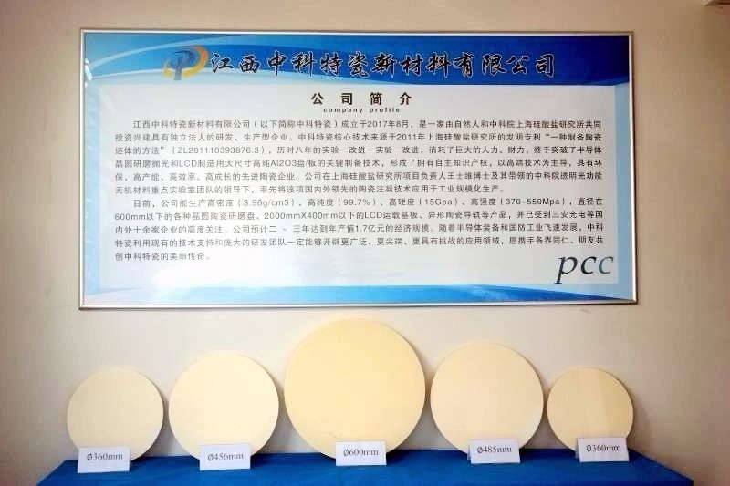 近五年來,該研究團隊在材料及陶瓷類國際期刊上發表PIBM自發凝固成型相關的研究論文20余篇,核心技術獲得授權中國發明專利6項。自報道以來,PIBM自發凝固成型體系引起國內外同行的廣泛關注。同時,該研究團隊一直致力于新型成型技術推廣應用工作。2017年7月,以新型PIBM自發凝固體系為技術核心,上海硅酸鹽所與江西萍鄉企業聯合成立了江西中科特瓷新材料有限公司,開展大尺寸高純氧化鋁陶瓷部件的產業化工作。目前,該公司建成了中試生產線,掌握了自發凝固成型大尺寸氧化鋁研磨盤的干燥、脫粘和高溫燒結等關鍵技術,制備了直徑360mm-600mm多種規格的高純氧化鋁研磨盤,為規;a奠定了堅實基礎。