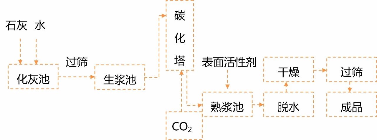 碳化法是納米碳酸鈣的主要生產方法。將精選的石灰石煅燒,得到氧化鈣和窯氣。使氧化鈣消化,并將生成的懸浮氫氧化鈣在高剪切力作用下粉碎,多級旋液分離除去顆粒及雜質,得到一定濃度的精制氫氧化鈣懸浮液;然后通入CO2氣體,加入適當的晶型控制劑,碳化至終點,得到要求晶型的碳酸鈣漿液;再進行脫水、干燥、表面處理,得到納米碳酸鈣產品。