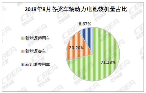 從車輛細分類別來看,2018年8月,我國新能源乘用車動力電池裝機量約2.97Gwh,環(huán)比增長26.27%;新能源客車動力電池裝機量約0.84Gwh,環(huán)比增長40..59%;新能源專用車動力電池裝機量約0.36Gwh,環(huán)比下降7.39%。