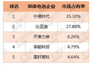 從電池企業(yè)來看,寧德時代以1.47Gwh的動力電池裝機量位列第一,占8月總裝機量的35.3%。比亞迪緊隨其后,動力電池裝機量為1.16Gwh,占比27.8%,排名第三的天津力神為0.26Gwh,占比6.26%,同上月排名相比,排名前三的企業(yè)沒有變化,行業(yè)龍頭地位企穩(wěn)。從排名前十的電池企業(yè)來看,除了排名順序略有變動,與上月電池企業(yè)基本一致,這一現(xiàn)象說明行業(yè)集中度進入相對穩(wěn)定期,優(yōu)勢企業(yè)明顯。