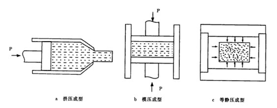 等靜壓成型改物料的單方向 (或雙方向 )受壓為多方向 (全方位 )受壓 ,炭素顆粒始終處于無序狀態(如圖 1, c)所示。 從而使最終產品沒有或很少有性能上的差異。方向上的性能比不大于 1. 1。人們稱其為: “各向同性”。