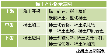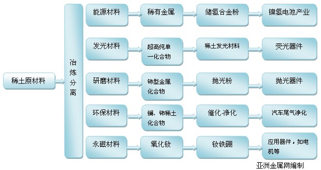 稀土產(chǎn)業(yè)鏈示意圖: