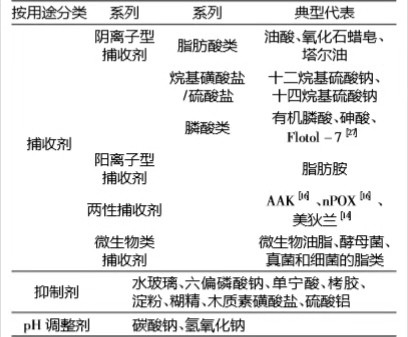捕收劑除油酸外,作為螢石的捕收劑可用烴基硫酸酯,烷基磺化琥珀胺,油酸胺基磺酸鈉及其他的磺酸鹽及胺類。