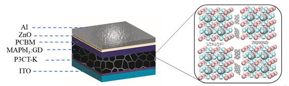 圖:石墨炔作為主體材料所制備的鈣鈦礦器件結構及光電性能