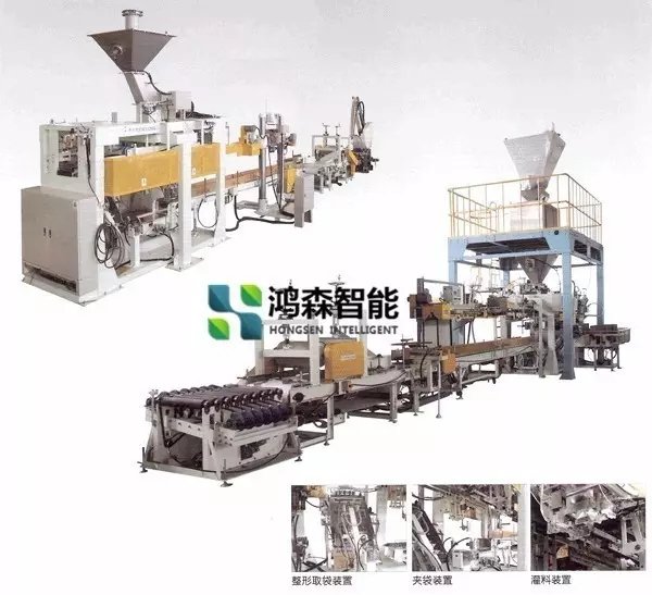 取袋、套袋、計量、灌包、卸包、縫包、換向、輸送自動完成。