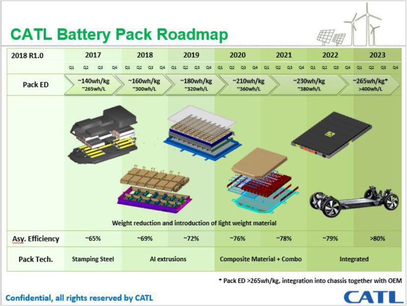 市場(chǎng)上流傳的一份寧德時(shí)代產(chǎn)品路線圖顯示,2019年其電池包能量密度,正好就是180wh/kg。