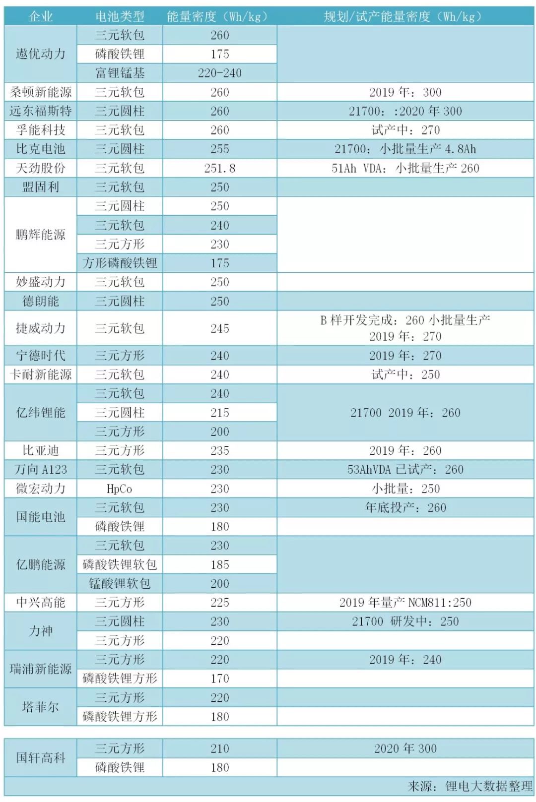 到2019年下半年,各電芯企業(yè)會(huì)有更高能量密度電芯產(chǎn)品推出,屆時(shí)180wh/kg能量密度的電池包會(huì)更多。