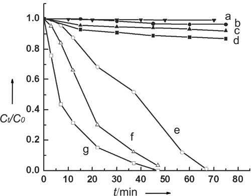 最近,該課題組又在新型半導體納米材料光催化劑領域取得了重要的研究成果,發展了一種利用自組裝技術制備具有高表面積的半導體ZnS光催化劑的方法。所制備的ZnS材料是一種直徑約為60納米的具有多孔的納米顆粒結構,每個納米顆粒由許多個直徑僅為3至5納米的粒子構筑單元自組裝而成,具有納米級孔道的結構(圖1)。這種由幾納米的粒子構成的納米孔顆粒在光催化領域具有許多優點。例如,具有很高的比表面積,可以達到150克/平方米的量級;具有很高光催化活性,實驗表明這種新穎結構的ZnS材料對模型系統—染料曙紅(四溴螢光素,一種有機染料)的光降解—表現出比納米晶材料和商用二氧化鈦納米顆粒更高的光催化活性(圖2);催化基元是尺寸量子化的納米晶,具有高的氧化還原電勢,提高了光催化反應的速度;既有效地防止了尺寸量子化的納米晶的進一步聚集,又比納米晶更容易分離和回收;具有良好的分散性,在反應過程中不需要攪拌,降低了能耗;制備方法簡單、經濟,可以大規模地合成。
