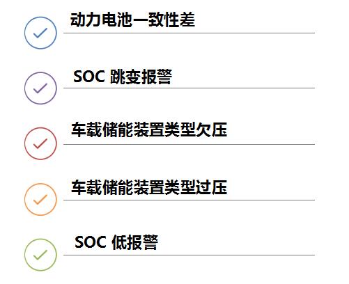 在搭載磷酸鐵鋰動力電池的純電動客車相關(guān)電池故障中,除了SOC跳變和SOC過高報(bào)警這兩項(xiàng)故障比較低以外,其他故障如SOC低、車載儲能裝置過壓、單體電池過壓、單體電池欠壓、動力蓄電池一致性差等故障比例為9%-28%,分布較為平均。