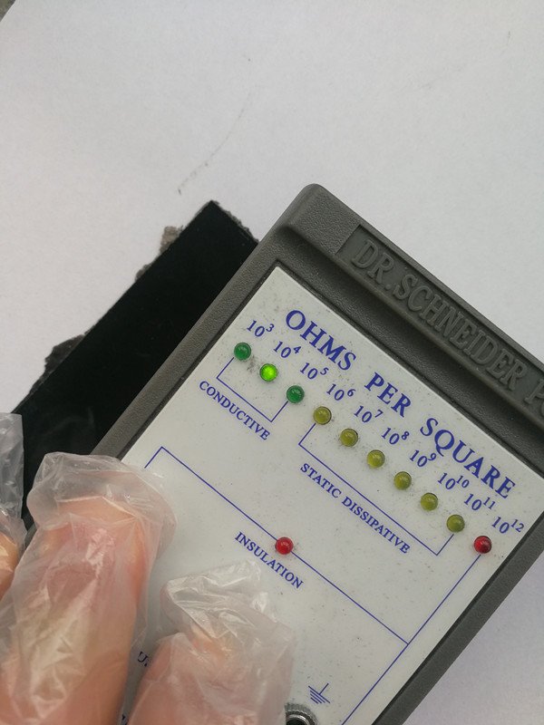(超高導電納米碳材料填充PC塑料表面電阻率數據,1mm厚度測試片)
