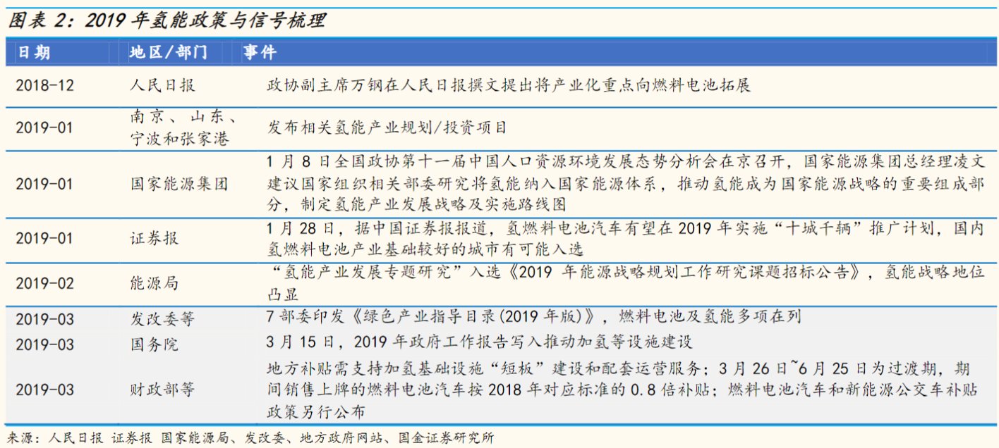 (19年氫能政策與信號(hào)梳理 來(lái)源網(wǎng)絡(luò))