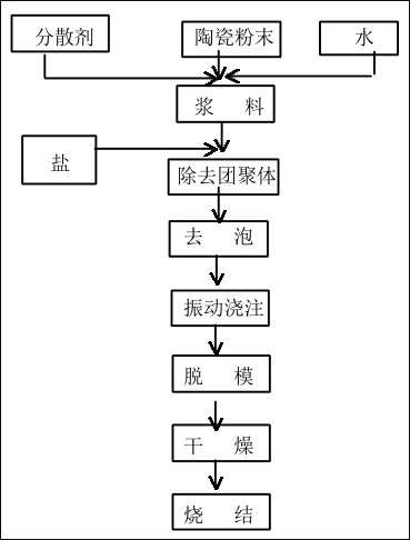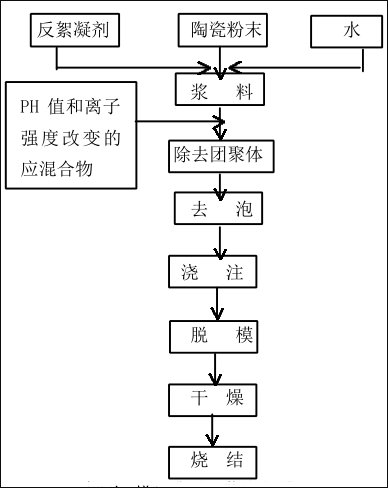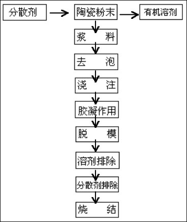優點:不需或只需少量的有機添加劑(小于1wt%),坯體不需脫脂,坯體密度均勻,相對密度較高,而且可成型大尺寸復雜形狀的陶瓷部件。