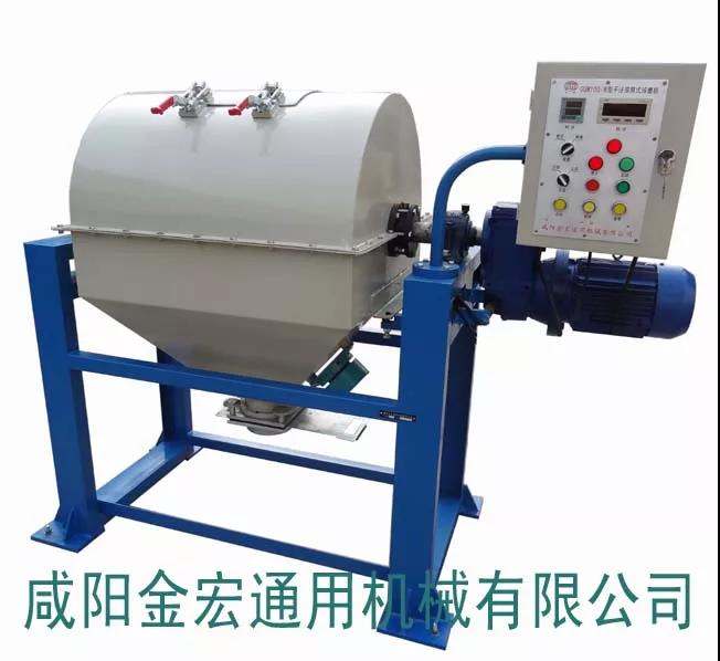 該機由一臺電動機拖動,筒體由鏈輪帶動,攪拌葉片由三角帶帶動,結構簡單,傳動可靠,維修方便;