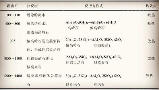 高嶺土在加熱過程中會發(fā)生脫水、分解、析出新物相等物化變化,較為復(fù)雜,一般認(rèn)為,高嶺土在加熱過程主要包括兩個階段:脫水階段和脫水后產(chǎn)物的轉(zhuǎn)化階段。