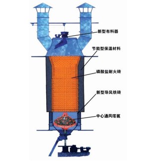 立式窯煅燒工藝:將粉碎后的高嶺土加水及添加劑成型,成型后的物料由窯頂?shù)募恿峡诩尤耄锪显诟G內(nèi)下移過程中經(jīng)歷烘干、脫除結(jié)構(gòu)水、燒成等階段,然后由底部側(cè)邊出料口卸出。卸出的物料經(jīng)冷卻后,入磨碎機(jī)二次粉碎。得到高嶺土煅燒產(chǎn)品。