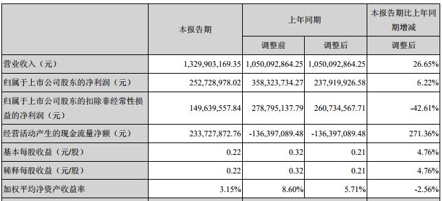 同日,贛鋒鋰業還公布了《2019年第一季度報告》,顯示報告期內,公司實現營業收入13.30億元,同比增長26.65%;實現歸屬于上市公司股東的凈利潤2.53億元,同比增長6.22%。詳情如下: