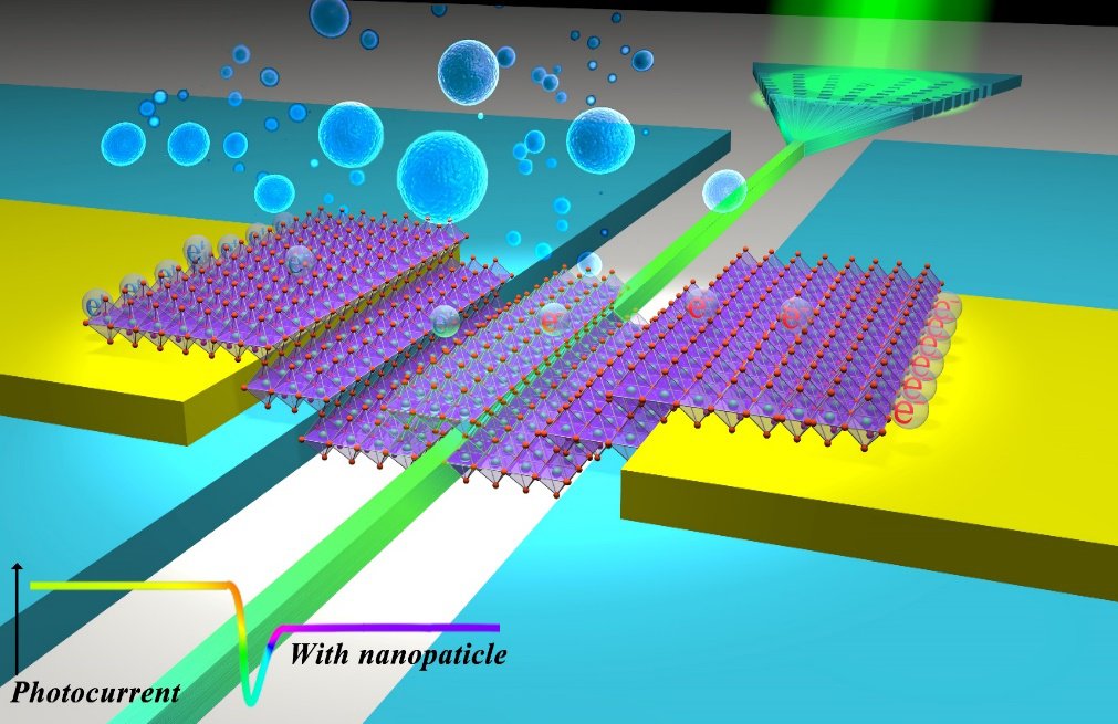 針對這些問題,哈爾濱工業大學(深圳)宋清海團隊充分利用甲基銨三鹵化鉛(MAPbX3)鈣鈦礦的優秀光電響應能力,將鈣鈦礦光電探測器與氮化硅波導相結合,利用新型鹵化鉛鈣鈦礦和氮化硅波導制備了一種集成光電探測器,并展示了它們在片上集成光學傳感器中的潛力。研究人員使用了簡便易得的激光二極管入射光源,結合鈣鈦礦氮化硅波導集成光電探測器,成功測量了半徑約為70 nm的單個聚合物小球。器件通過將鹵化鉛鈣鈦礦納米片集成到Si3N4波導上并結合適宜的封裝,實現了鹵化鉛鈣鈦礦在極性溶液中測量納米級物體的突破,從而可將其用作復雜環境下的光學傳感器。與傳統的光電探測器件通過采集空間光信號從而實現光電探測所不同,該器件依靠的是集成波導倏逝波傳感,這種片上集成鈣鈦礦光電探測器的外量子效率可以高達0.2922 AW-1,證明了該器件性能與非集成類鈣鈦礦光電探測器一樣好,與此同時片上集成結構體系使本器件擁有了檢測波導中光信號的微小變化的獨特能力。實驗中通過光電流的實時變化簡單地解決了半徑小至70-80nm的納米級物體的實時探測問題。由于光電探測器是片上集成的,因此該傳感系統僅需要常規的半導體激光二極管和已經有完善的研究的光纖耦合系統支持就可以順利工作,極大的降低了設備成本并有助于便攜性的提高,能夠協助解決納米尺度物體的光電傳感器的長期存在的設備要求繁瑣檢測成本高昂的問題。值得注意的是,通過用鈣鈦礦二維材料異質結構代替鈣鈦礦納米片,可以進一步改善片上集成傳感器的性能,特別是對于高溫度和高濕度條件下的應用,具有極大的開發潛力和性能提升空間,本研究中提出的片上集成鈣鈦礦光學傳感器能夠在未來的商用終端傳感器和其他便攜式設備中發揮重要作用。