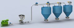 低壓壓送式系統,動力源多采用羅茨風機,設在系統的進料端。物料與空氣混合加速后被壓送至末端的收料設備或緩存倉內,而壓送的空氣則經過倉頂除塵器凈化后排入大氣。