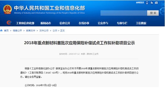 中國粉體網(wǎng)訊 日前,工信部公示了2018年重點新材料首批次應(yīng)用保險補償試點工作擬補助項目。近90家生產(chǎn)企業(yè)獲得保險補助,投保新材料包括高性能鋰電池隔膜、高性能碳纖維、碳化硅陶瓷膜過濾材料、高純石墨、鎳鈷錳酸鋰三元材料、高性能無機非金屬礦物填充材料、電子級多晶硅、石墨烯改性防腐涂料等。其中,深圳市貝特瑞納米科技有限公司“鎳鈷鋁酸鋰三元材料”獲保險補償。