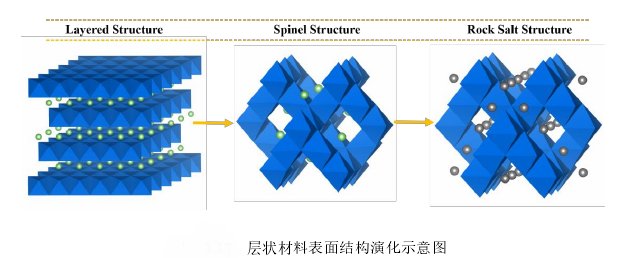 材料表面由于存在懸掛鍵以及不飽和的配位關系會使其反應活性明顯高于體相。當對鈷酸鋰電池充電時,會發生以下反應過程:(1)正極材料自表面開始脫鋰;(2)脫鋰發生后,Li層氧原子間失去阻隔產生排斥,導致表面結構不穩定;(3)持續脫鋰促進表面晶格活性發生氣體溢出;(4)溢出氣體導致表面Co原子穩定性變差、溶解;(5)溶解的高價Co元素也會氧化電解液參與電解液化學反應。目前困擾高電壓鈷酸鋰應用的主要瓶頸是難以通過45℃的循環測試,大量的金屬溶解、氧氣析出以及材料相變過程變成高電壓鈷酸鋰應用之路最大挑戰。