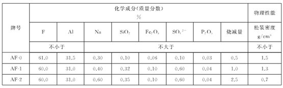 GB/T 4292 —2017 《氟化鋁》中要求氟化鋁的化學成分和物理性能指標應符合表1的規(guī)定。