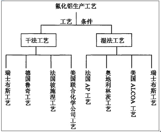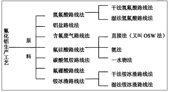 按照工藝條件可大致分為:干法和濕法工藝兩大類。按照原料的不同,其生產工藝可分為:氟硅酸法、氫氟酸法、氨法、鋁鹽法以及含氟廢氣法等。