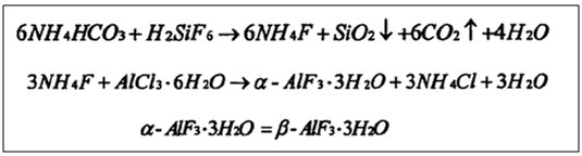 碳酸氫銨法制氟化鋁主要步驟為:1)用碳酸氫銨與氟硅酸反應制得氟化銨溶液和二氧化硅沉淀;2)用氟化銨與氯化鋁反應制得氟化鋁產品。